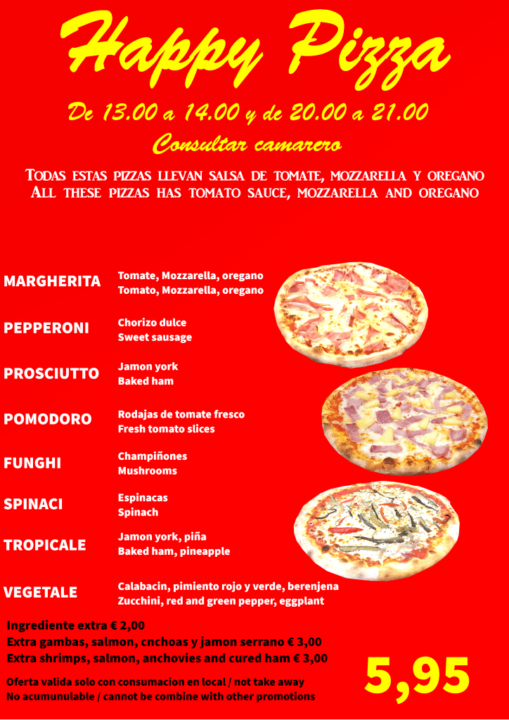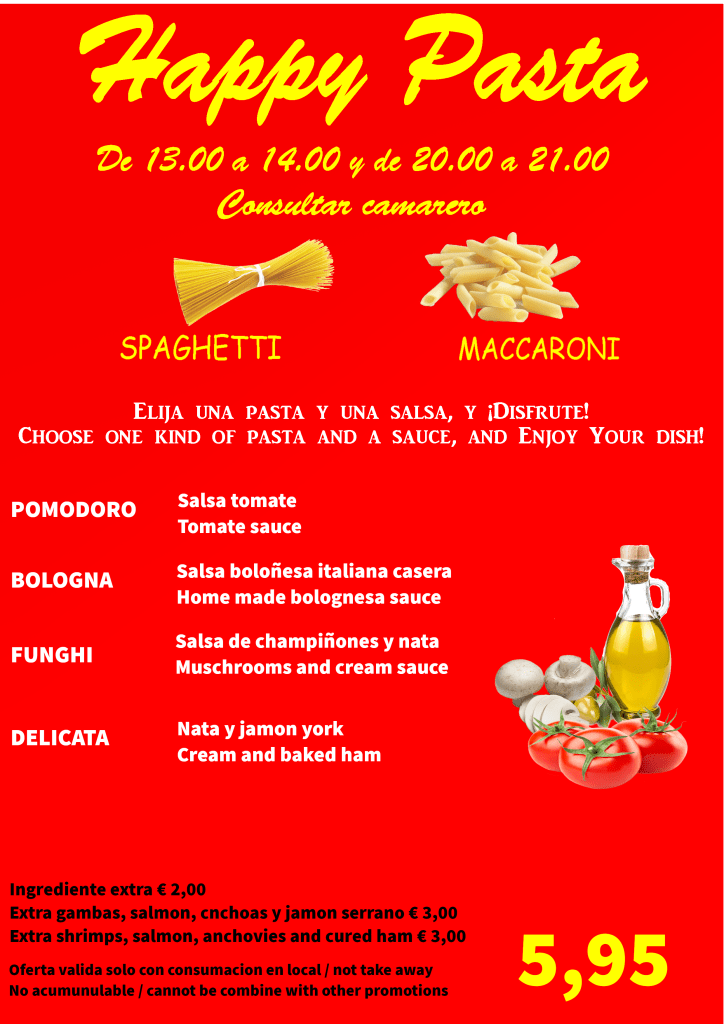 Hora Feliz – la pasta y la pizza a 5,95!!!
